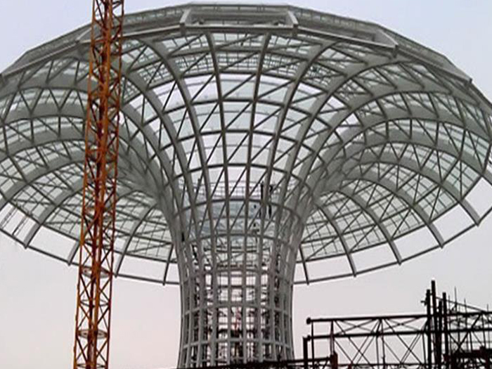 二、球形网架结构因其结构新颖,受力合理,自重轻、用钢量低等优点。如大型体育场馆球形赤峰螺栓球网架、公共场馆球形网架、电厂赤峰螺栓球网架、水泥工业球形网架、仓储物流球形网架、赤峰干煤棚工业球形网架、赤峰收费站赤峰加油站球形网架、展览中心、影剧院、商场、航站楼、候车厅、工厂赤峰车间、仓库、电视塔等球形螺栓球节点网架。国内球形网架结构主要分为:赤峰焊接球节点网架及螺栓球节点网架两种。螺栓球节点网架其构件工厂内加工量较大,现场安装便捷,适用于现场工期紧,赤峰施工条件、用电量受制约,网架形状复杂、赤峰杆件定位困难的异形结构。螺栓球节点球形网架系统基本由赤峰杆件、螺栓球、支撑支座等组成。按照节点形式可分为交叉赤峰桁架体系、四角锥体系、三角锥体系等。支撑方式多为固定支座支撑。对于大面积、大跨度及有特殊受力或伸缩要求的网架结构可采用橡胶支座、滑移支座、球铰支座等支撑形式,以满足结构自身的受力稳定、均衡,便于内力释放等设计要求。